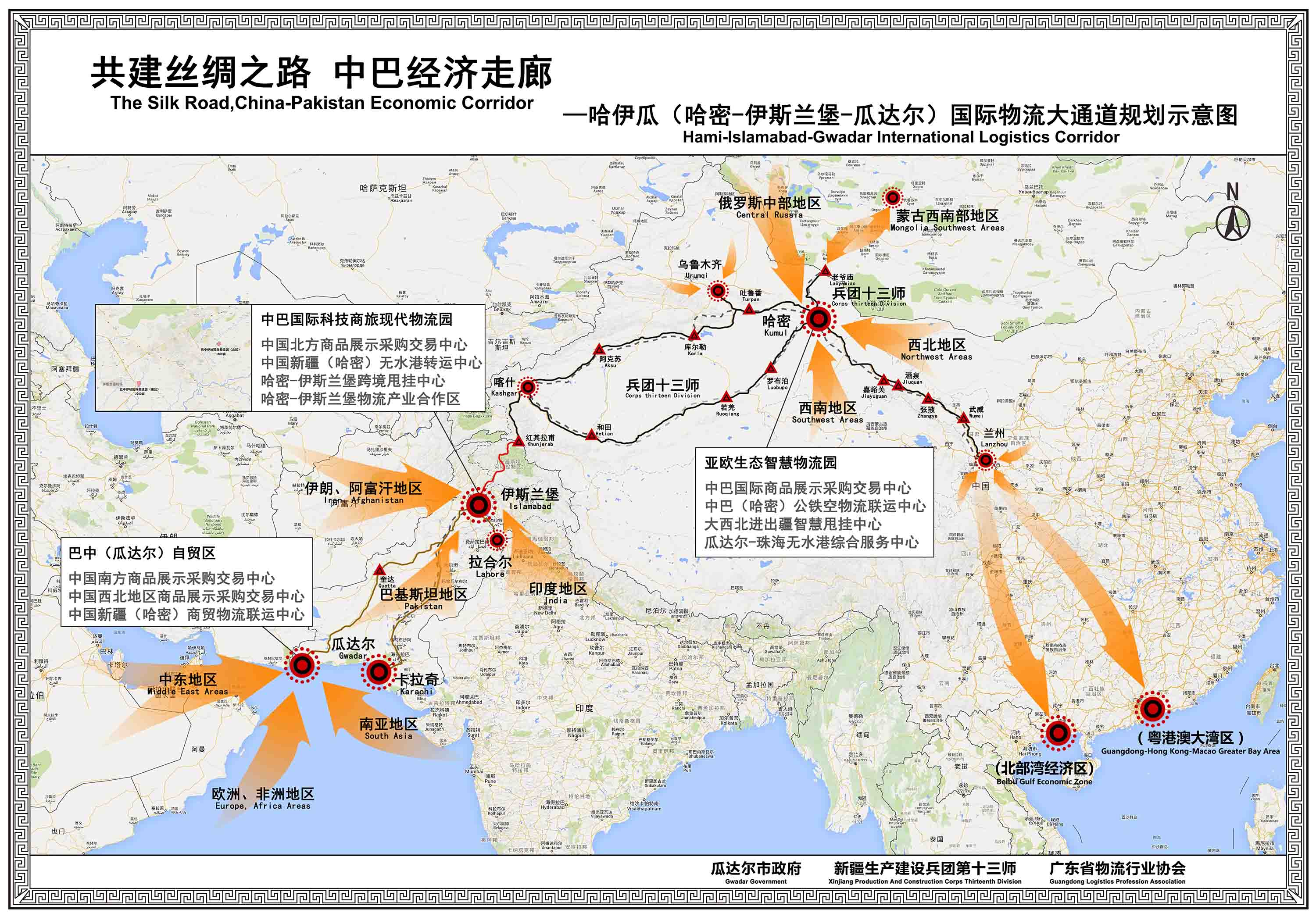 共建絲綢之路 中巴經(jīng)濟(jì)走廊-哈伊瓜國際物流大通道規(guī)劃示意圖